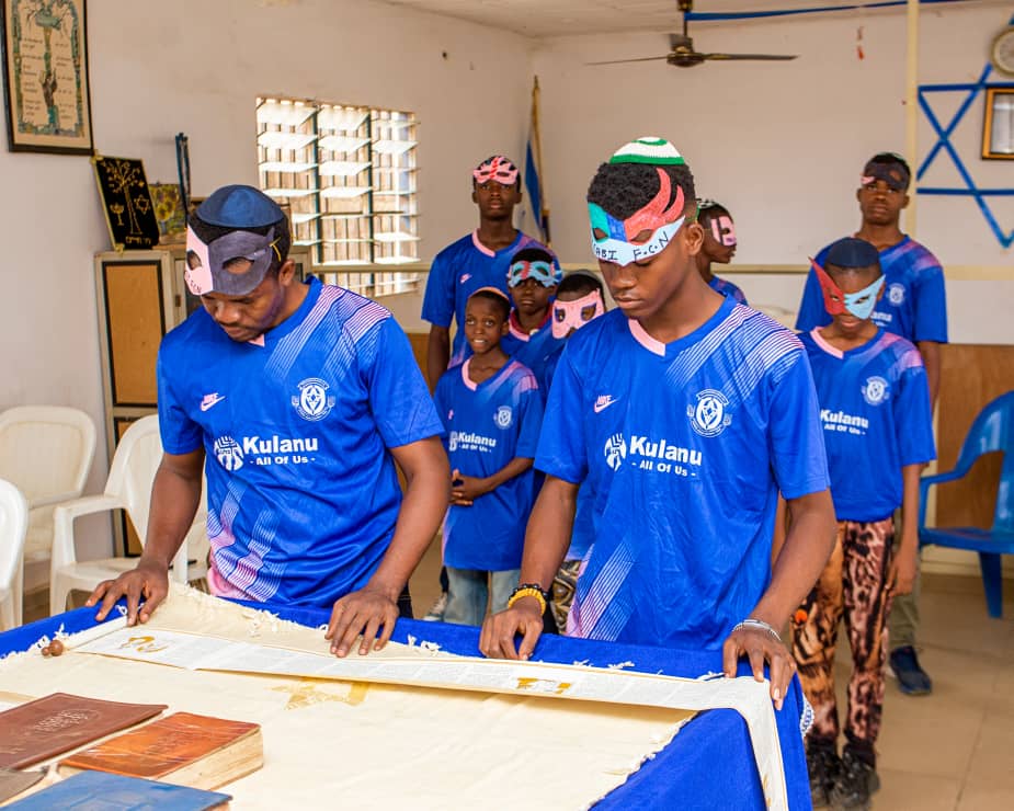 The evening buzzed with excitement and a vibrant festive atmosphere as the young players, primarily from the Gihon Hebrew Synagogue, along with their fans, gathered at the synagogue in Abuja, the capital of Nigeria, to get ready for the Purim eve service, where they would read the megillah Esther, in accordance with Purim tradition. The players who spent the night at the synagogue resumed the service in the morning with a Torah service, attended by both the older and younger members of the congregation, along with two visitors who expressed their delight in attending the service at the Synagogue.